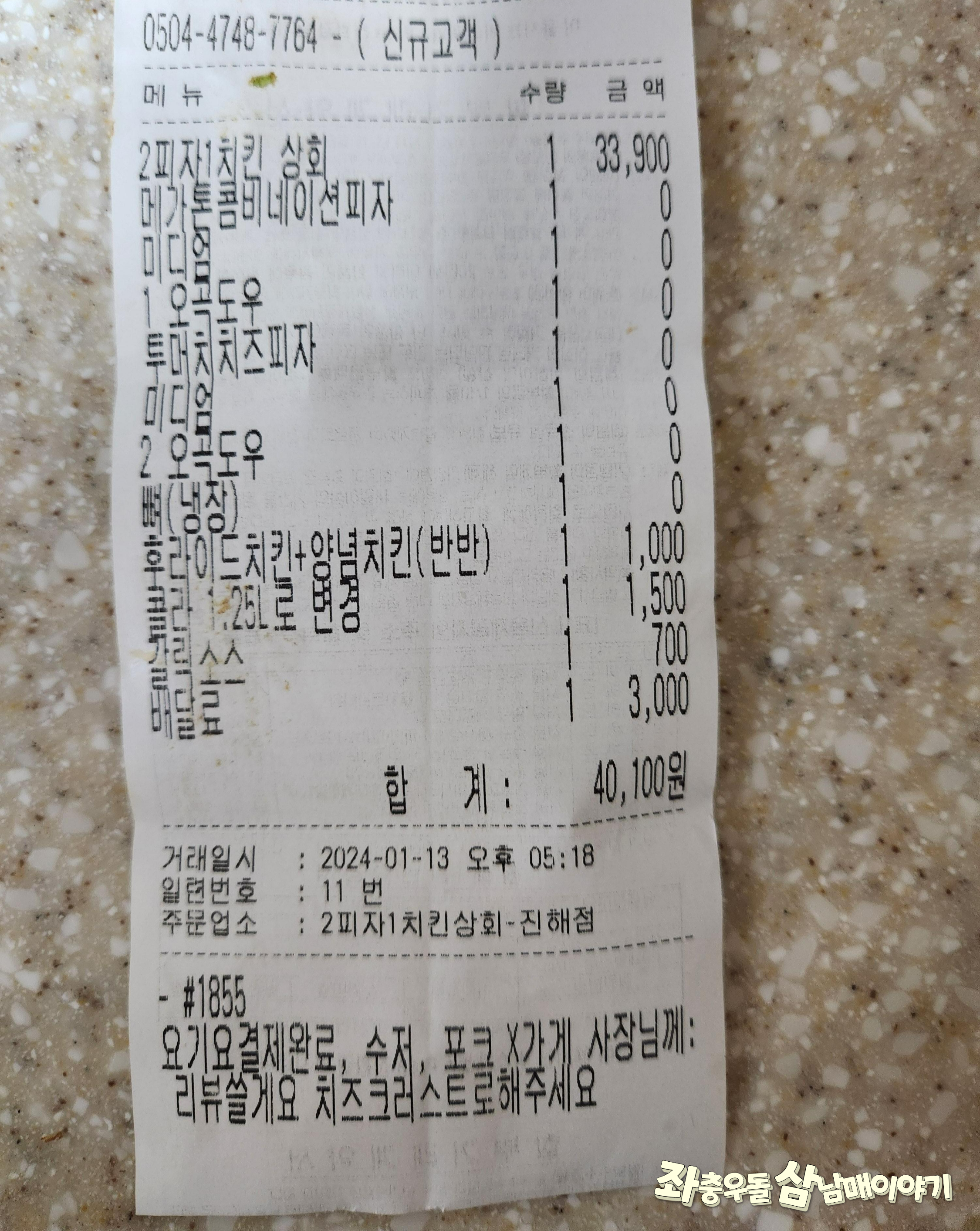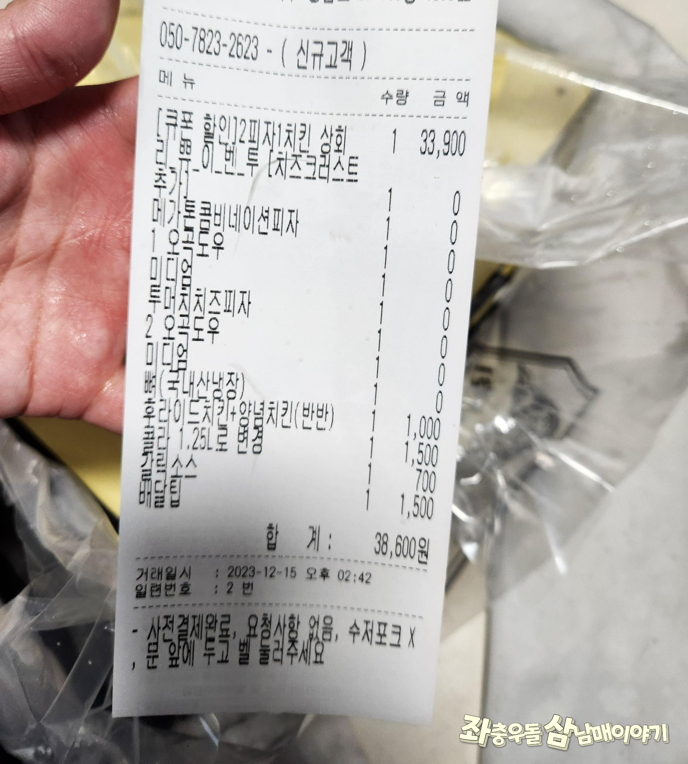 그런데 제가 시킨건 피자 2판, 치킨 1마리 해서 3만원 중반쯤이었답니다.
