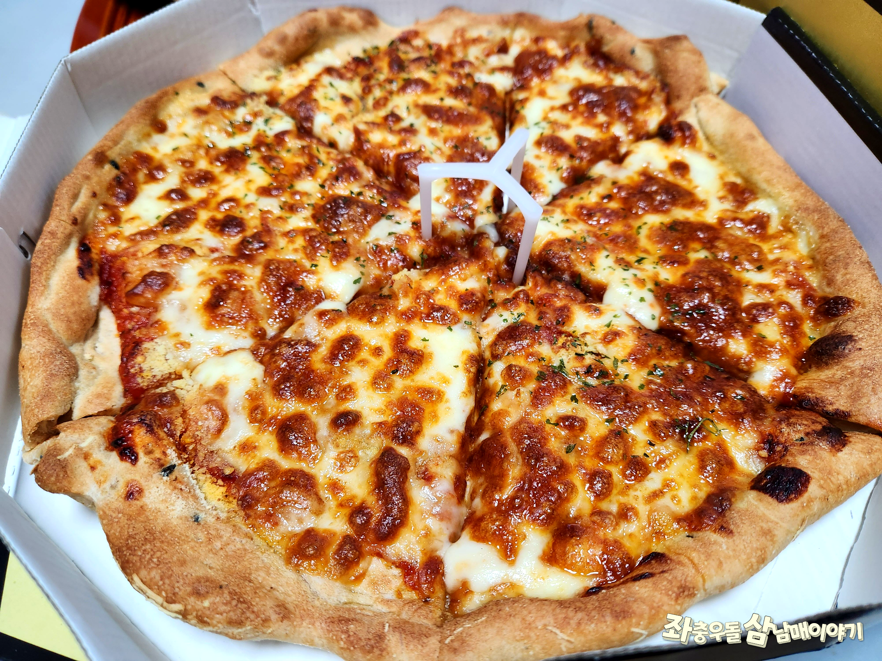 치즈피자지만 투머치~해서 치즈가 듬뿍들어가있어요.