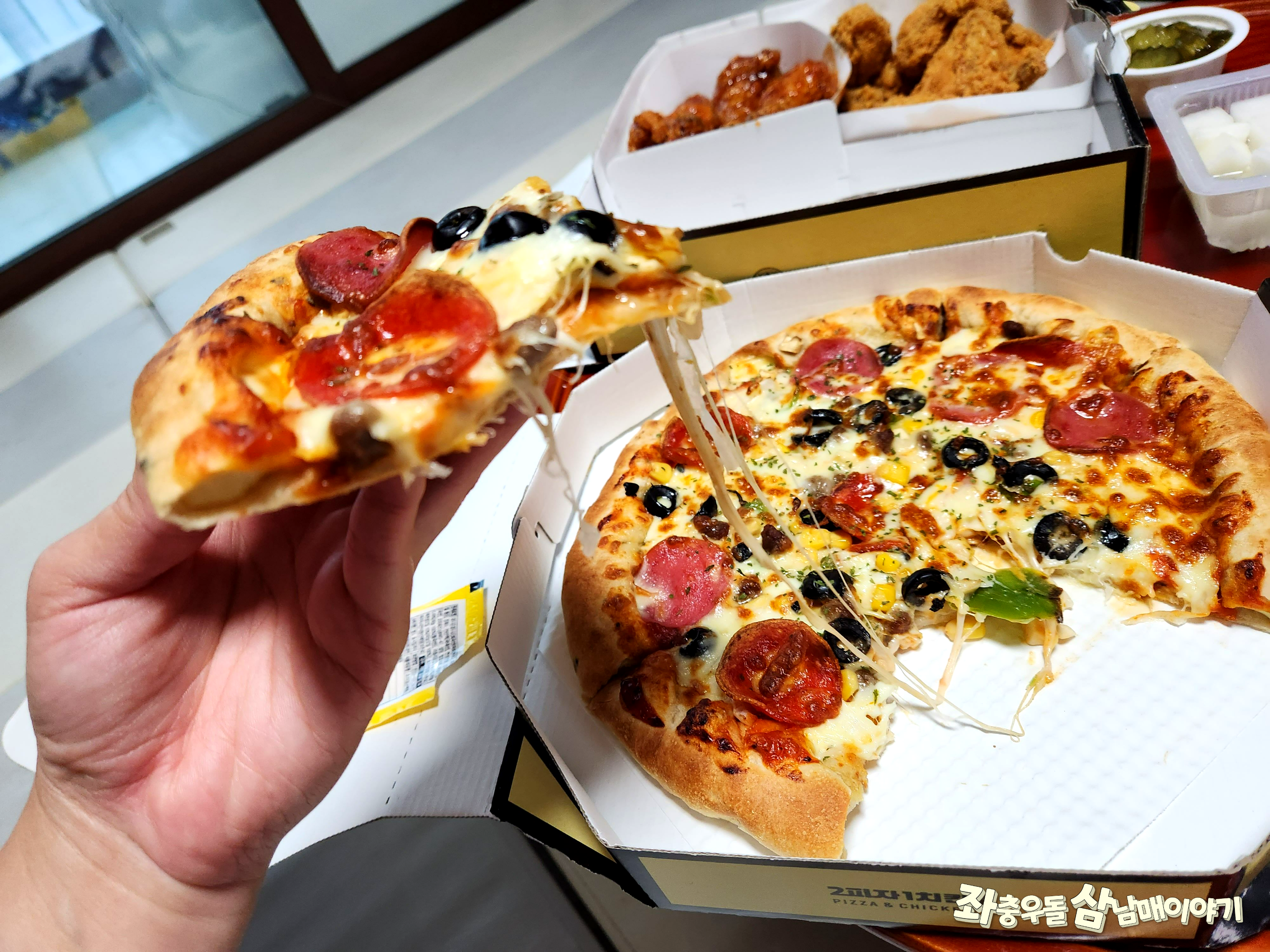 치킨이 맛있으면 피자가 토핑이나 치즈가 좀 부실한 경험이 많았어요.