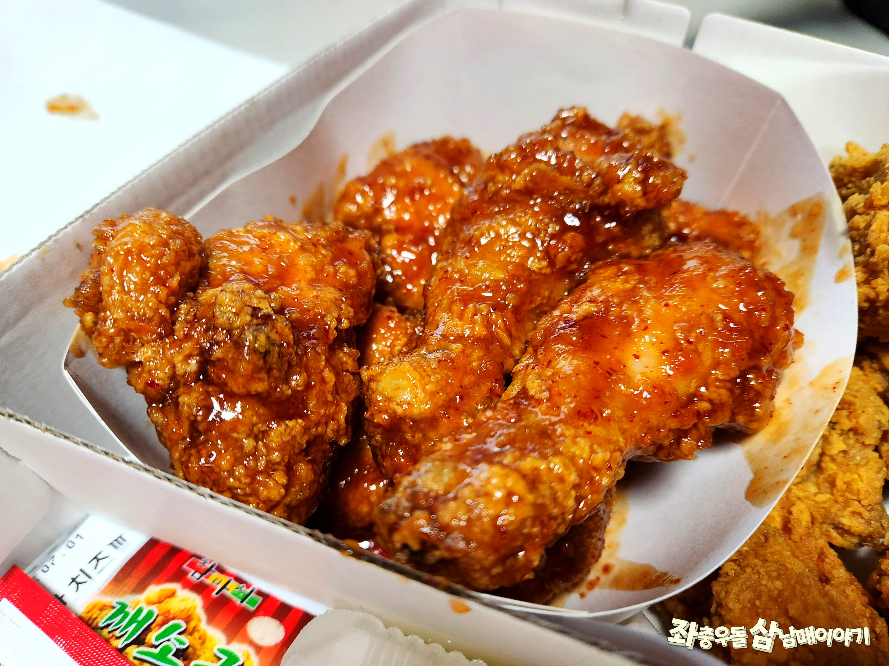2피자 1치킨상회는 양념치킨 껍데기마저도 얇디 얇아서 대박이었어요.
