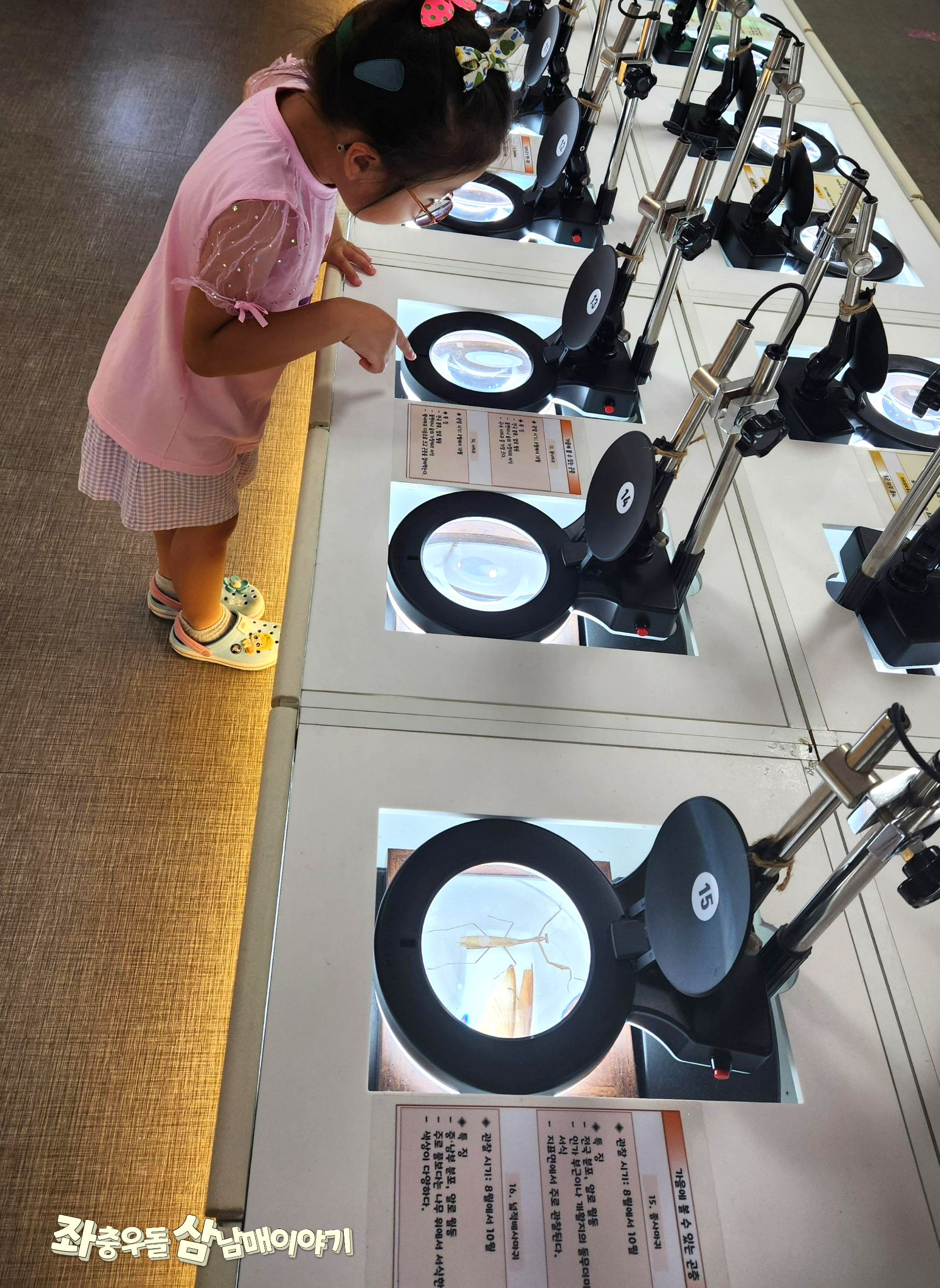 다양한 종류의 곤충을 돋보기로 볼 수 있고 자세한 특징을 알 수 있었어요.