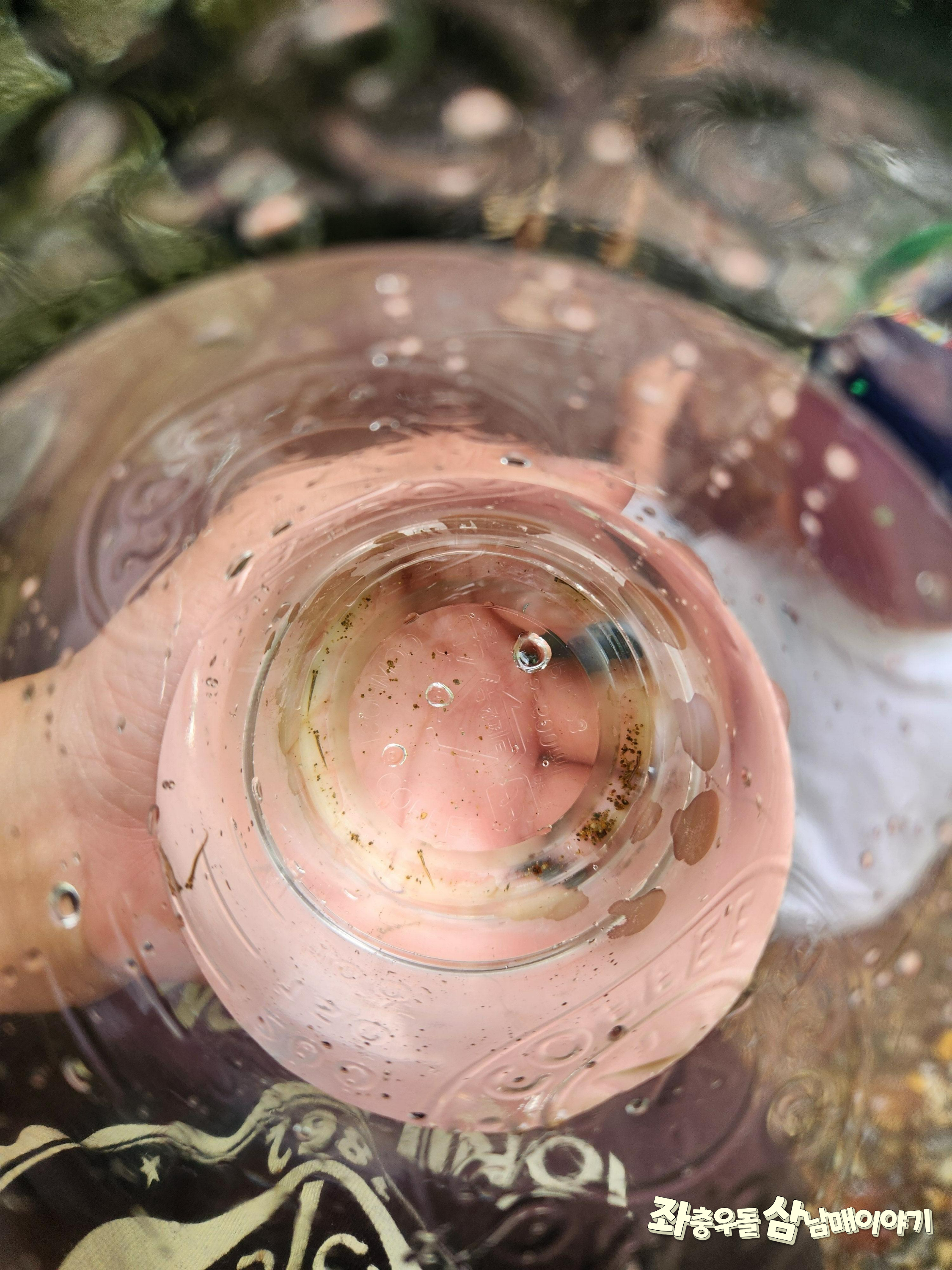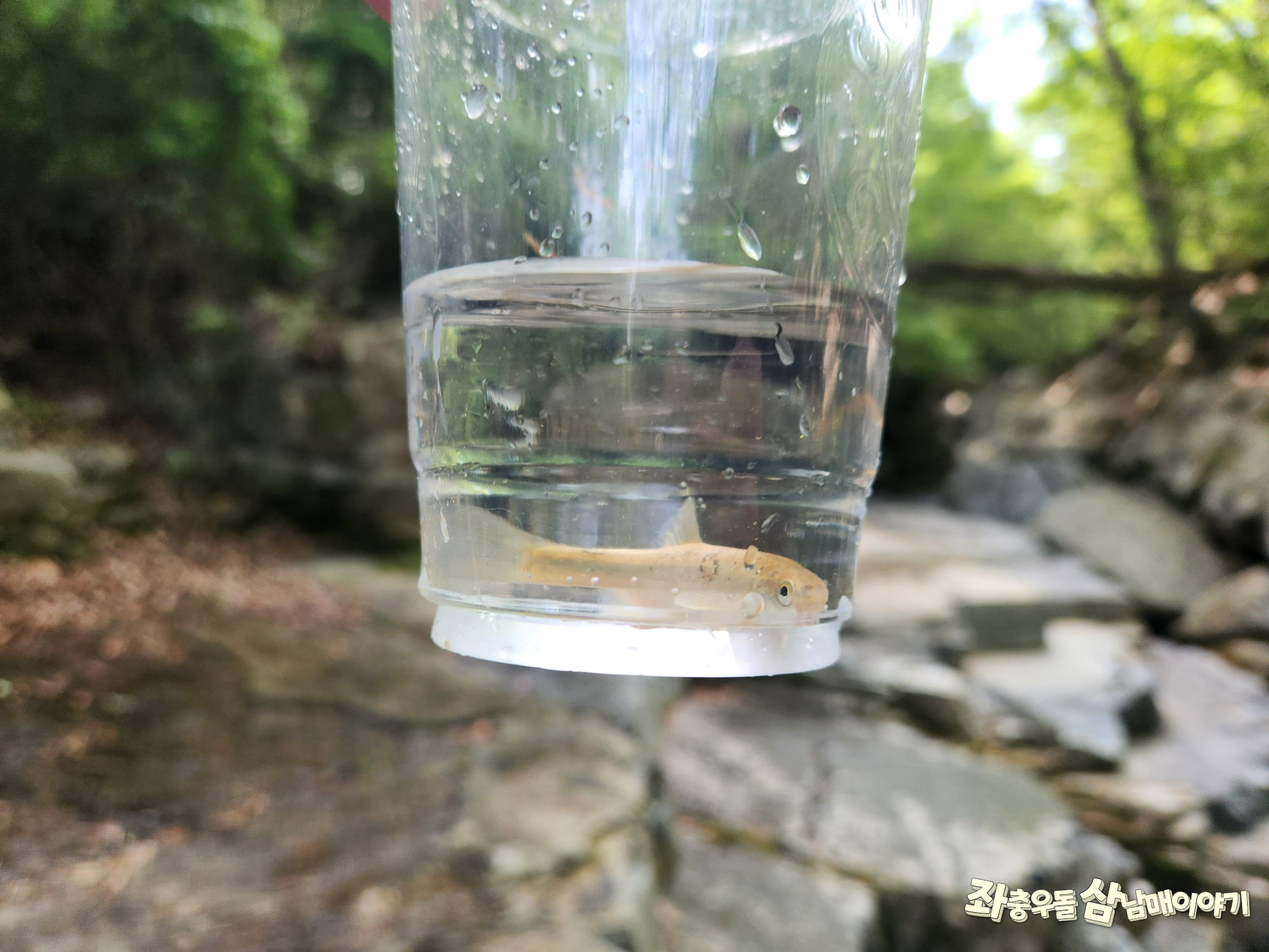 새끼물고기들은 저렇게 일회용 컵으로 한번 뜨면 4~5마리씩 잡히더라구요.