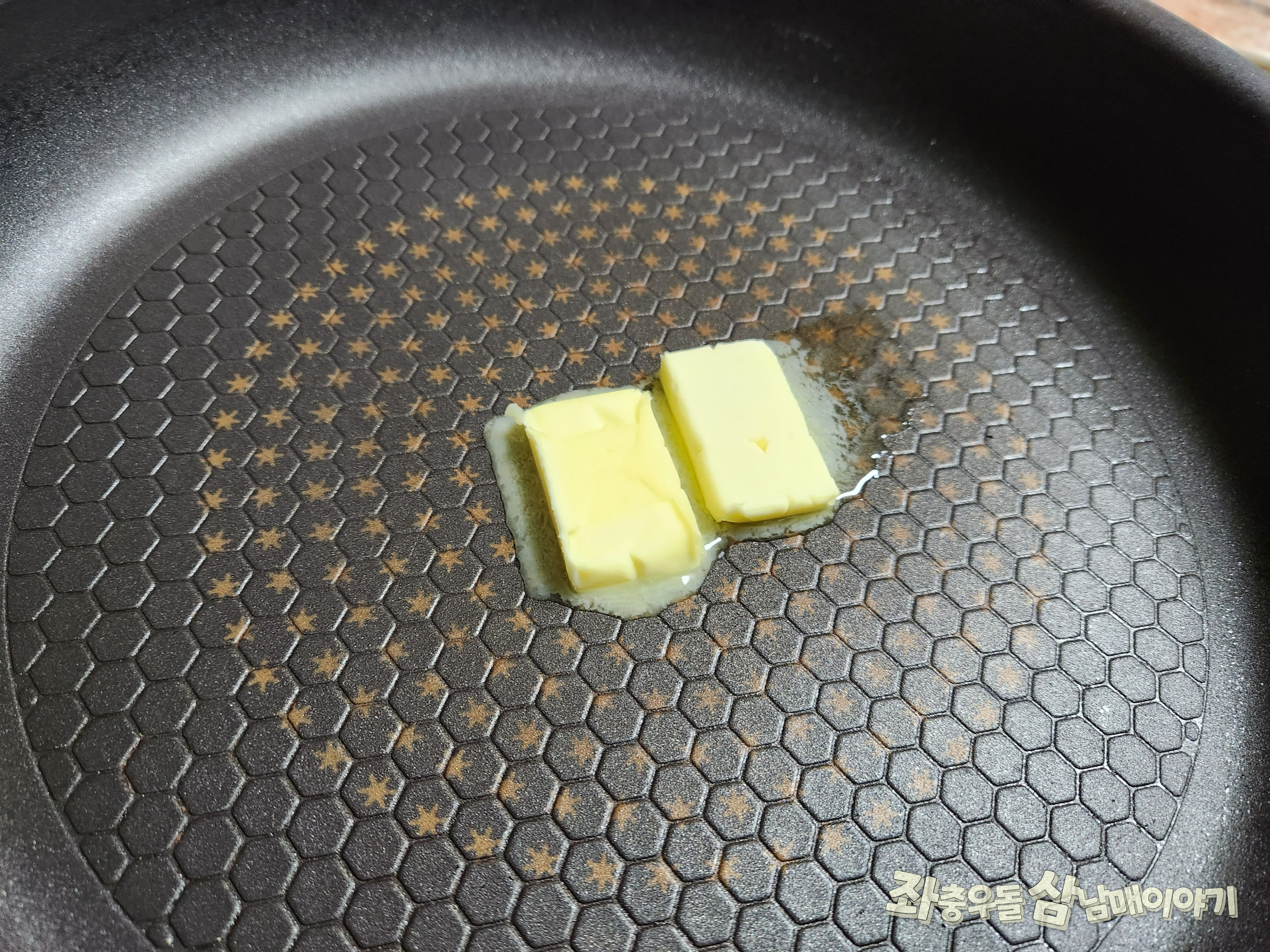 1. 버터2조각을 팬에 가열