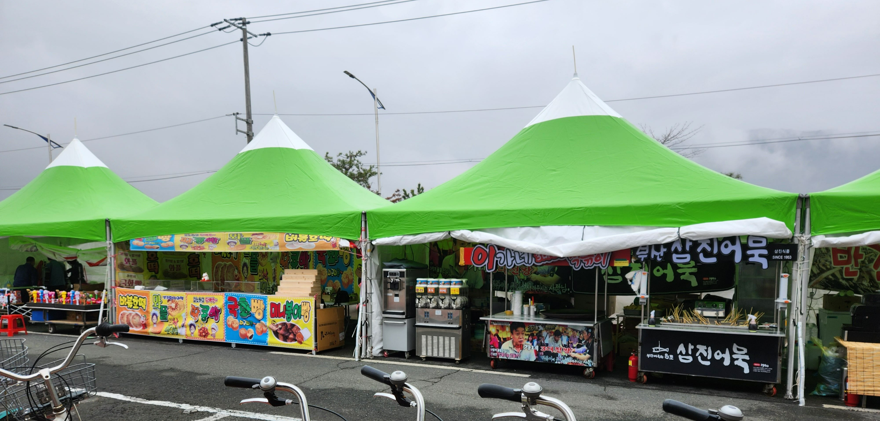 : 버터구이오징어, 삼진어묵, 이가네떡볶이, 땅콩빵, 국화빵, 미니붕어빵, 통돼지바베큐, 잔치국수, 해물파전 등