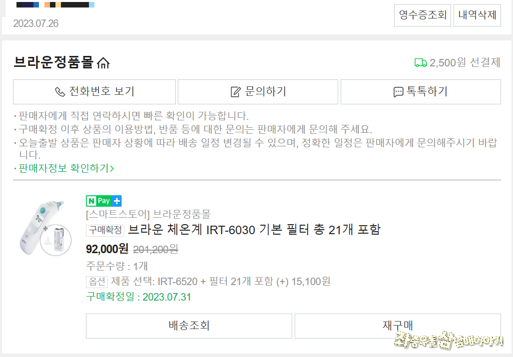 제가 산 곳은 네이버에서 샀는데 브라운체온계 정품몰이었네요.