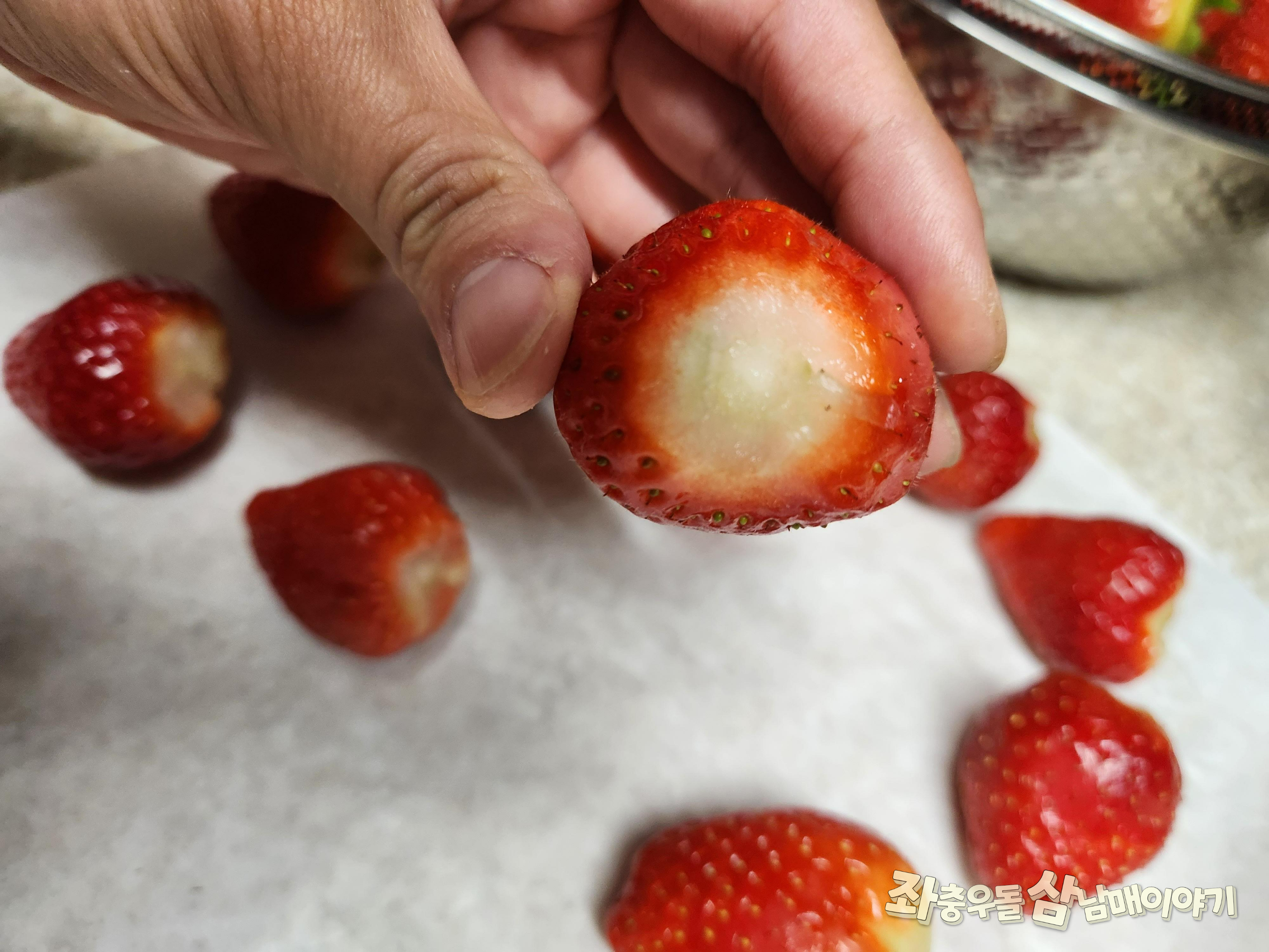 ≫ 딸기의 경우 꼭지는 똑 떼주기(칼로 자르지 않기)